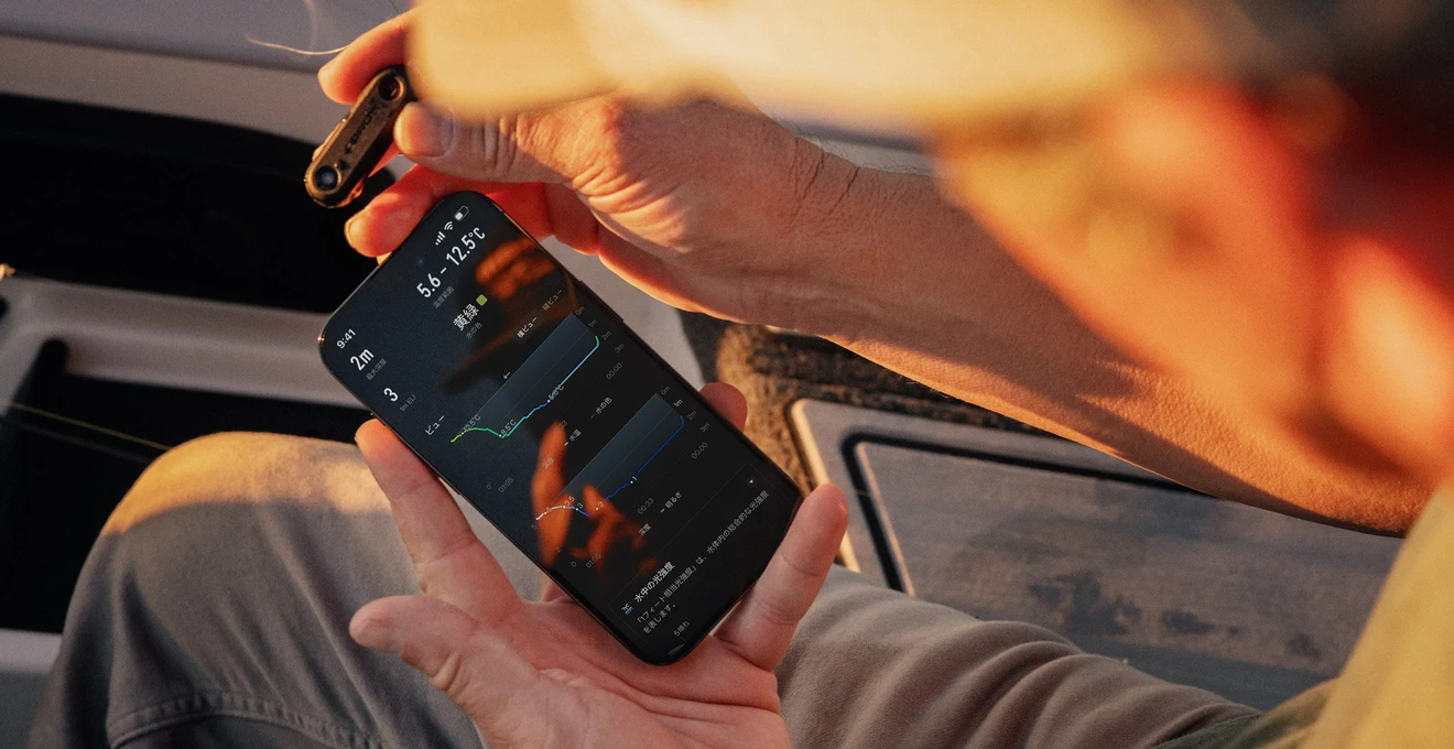 魚は水温に敏感で、表層の温度だけでは全体像は見えません。COROS HYDROPは水温の垂直変化をリアルタイムで計測し、水層ごとの温度変化をカラーで表示。魚の活性が最も高いエリアをダイレクトに攻略します。