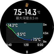 ウォッチ連携:水中データをリアルタイムで手元のウォッチに表示、アプリでもいつでも確認できます。