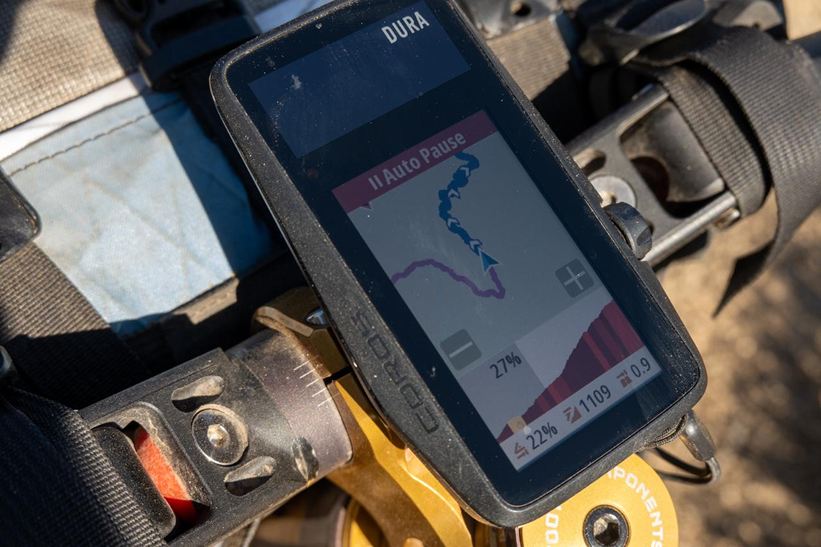 4、5か月に及ぶライド中、レフスナイダーのCOROS DURAは常に自転車のステムに取り付けられたままだった。彼はこれを使ってルートラインに沿って走行し、POIを確認し、標高データをトラッキングした。「そのルートラインに従ってのナビゲーションは……まったく頭を使わずに済んだ」と彼は語った。