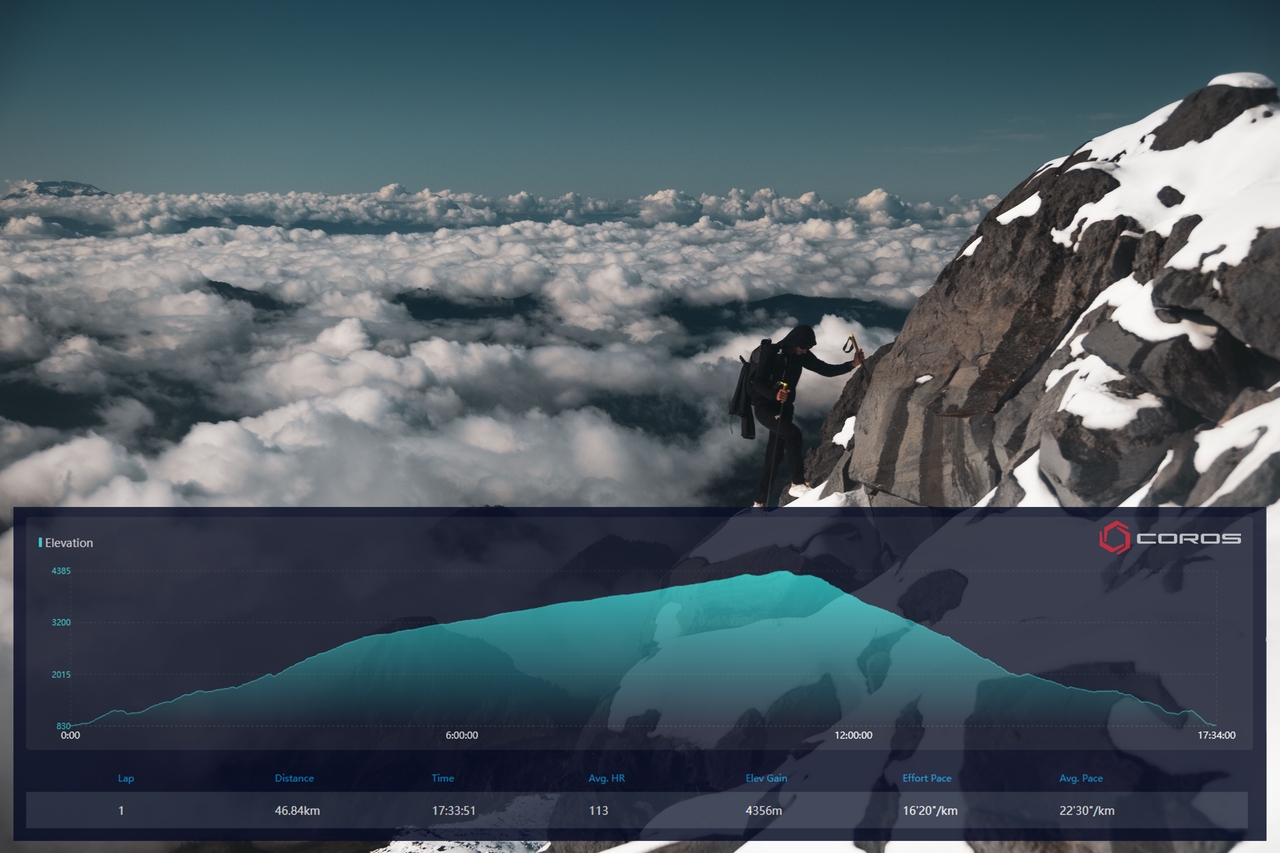 それらの道のりにおける幾多の山頂や、あらゆる決断を通じて、キリアンのCOROS APEX 4はすべてのデータを記録しました。それは彼が努力や耐久力を試す過程でのあらゆる瞬間を残しています。