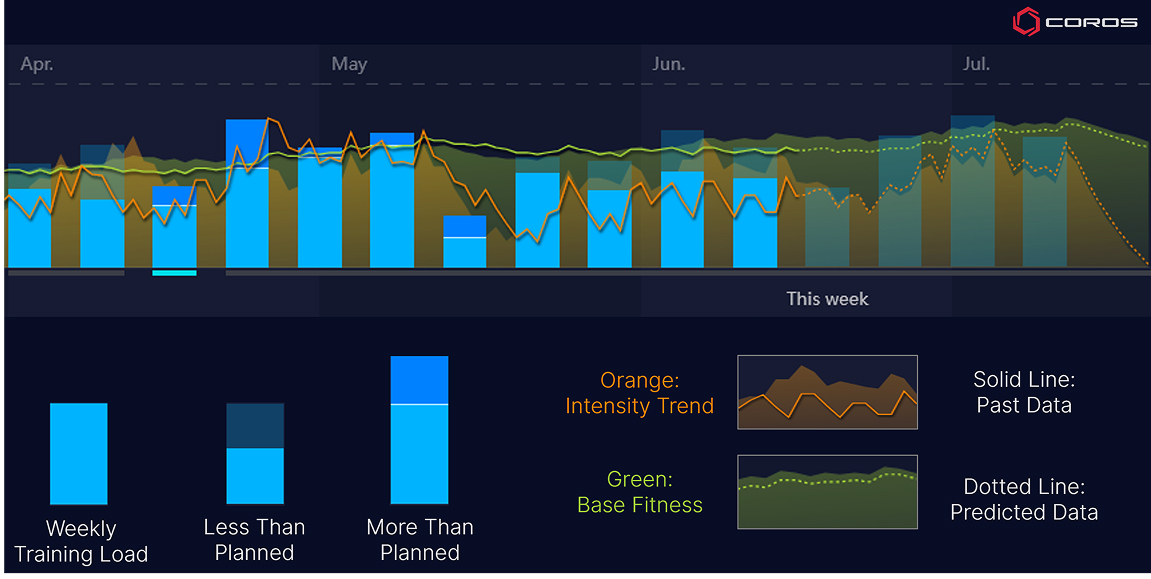 達成可能:実際に目標を最後までやり切るためには、それが達成可能である必要があります。週40時間働いている人にとって、毎日3時間のライドは現実的とは言えないでしょう。小さな目標から始め、達成体験を積み重ねることで、将来的に目標を段階的に引き上げていくことができます。COROSは現在のフィットネスレベルを推定し、最適なトレーニング負荷を提示してくれるため、自分の状態を把握しやすくなります。これを活用して、現在の旅路においてどこにいるかを確認し、どこまで行けるかを決めましょう。