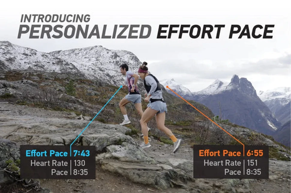 出力ペースは、過去のデータをもとに、勾配が変化した時のあなたの出力をモニタリングします。つまり、アスリートにとって、時計に表示される出力ペースは、過去のトレーニングと、平地での走行速度を示すバイオメトリック情報の組み合わせということになります。一方、調整ペースでは、上り坂のペースと平坦な道のペースという標準的な計算式が表示されるだけです。出力ペースは、異なる地形でのランナーとしての効率性を考慮します。