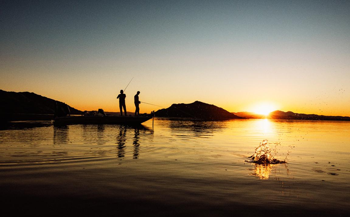 彼らは毎日、ボートで湖上を約45km移動しました。岩場の入り江が迷路のように入り組んだこの湖を航行するのは初めてでしたが、それでも彼らは、より大きな魚や攻撃的な魚の群れがいる最高のスポットを正確に絞り込む必要がありました。理想的には、1〜2kgのブラックバスが対象です。