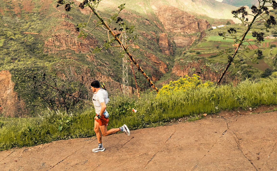 トランスグランカナリアのようなトレイルレースは、純粋なスピードではなく地形によって左右されます。コースは松林を登り、火山の尾根を越え、長くテクニカルな道を下り、フィニッシュ付近でより高速な砂漠のセクションへと続きます。テクニカルなスキルと幅広い適応力で知られるジョンにとって、まさにうってつけのレースです。