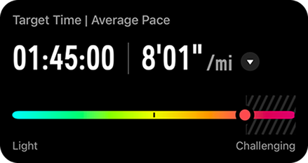 - スライドで調整:COROSアプリで任意のルートを選択し、目標タイムまでスライドするだけです。アプリは、ルート全体のペースをリアルタイムで再計算します。