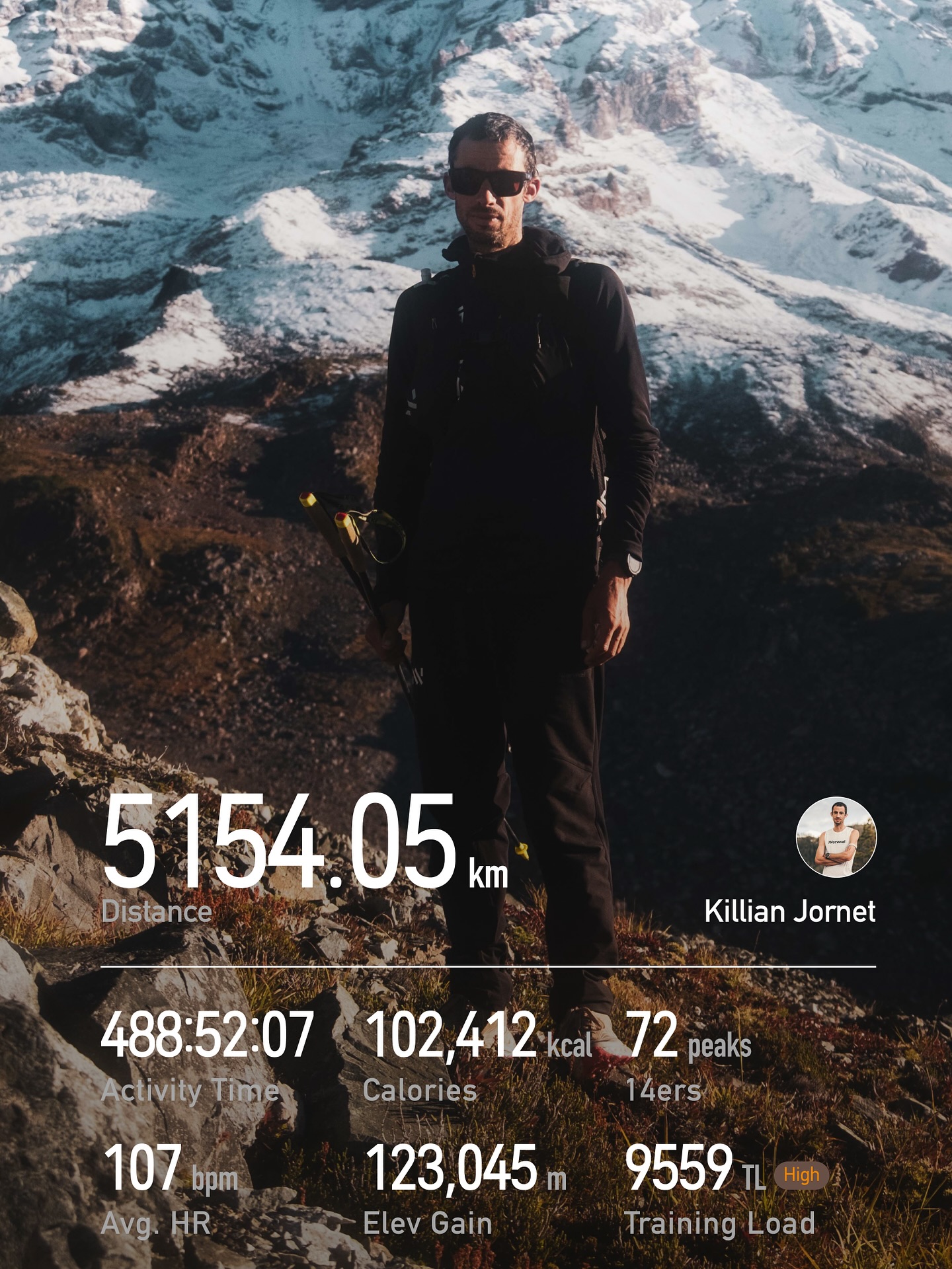 キリアンは9月の1ヶ月間で5,145km以上を走破し、72もの標高4,200m級の高峰に登頂しました。
