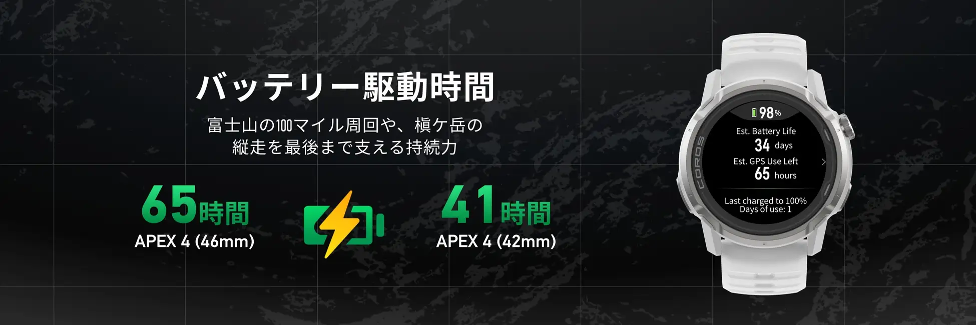 COROSならではの超ロングバッテリー性能を同時に実現します。