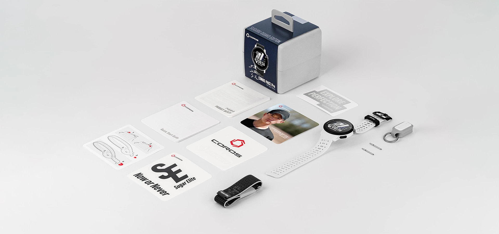 COROS PACE Pro Suguru Osako Editionは、最もシンプルなカラーである「白と黒」を使用。どんな服にも合わせしやすく、かつ、ランニングに集中することができます。 また、大迫選手は次世代ランナーの育成やランニングの楽しさを伝えるために “Sugar Elite” の活動を主宰していますが、 “Now or Never”「今やらなかったら、もうあとはない」 というキャッチ フレーズは、人の心を突き動かす大きな決意や意志をイメージさせます。